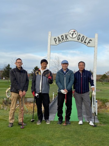 地元 白老に日高会長と、飛び入りで参戦していただいた、パークゴルフ新聞の小野寺さんを迎え、