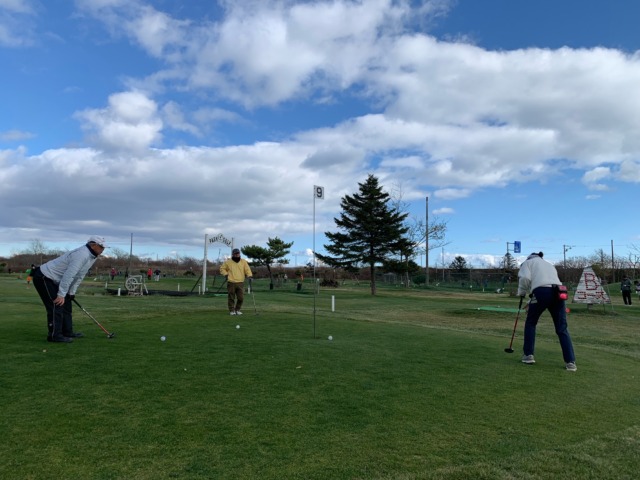 ティーショットをOBになるのでは⁉という勢いで打ちましたが、同伴者のボールに当たり、ギリギリOB回避!